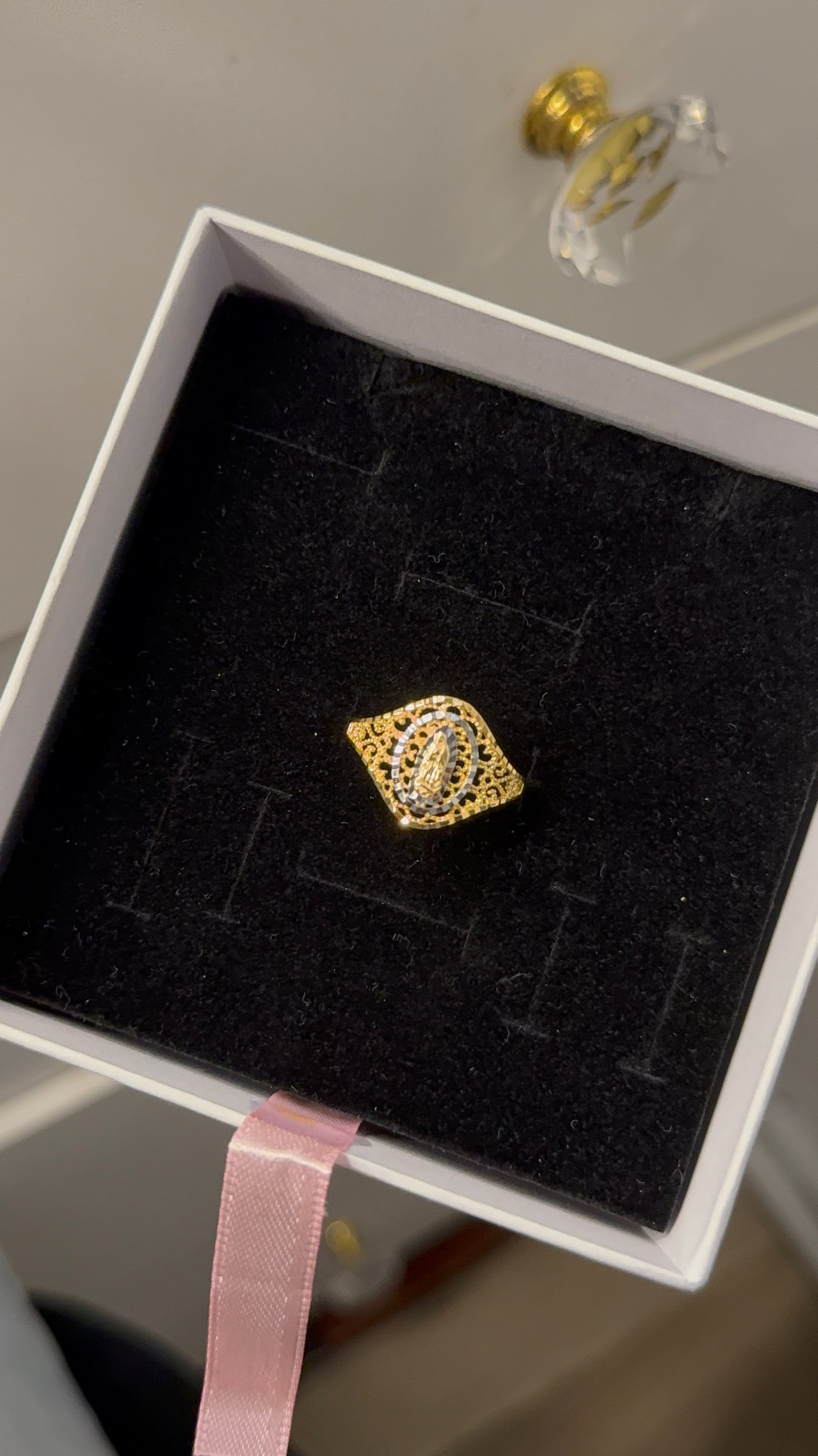 925 Sterling Silver Ring with Gold Plating – Virgin Mary Design size 9