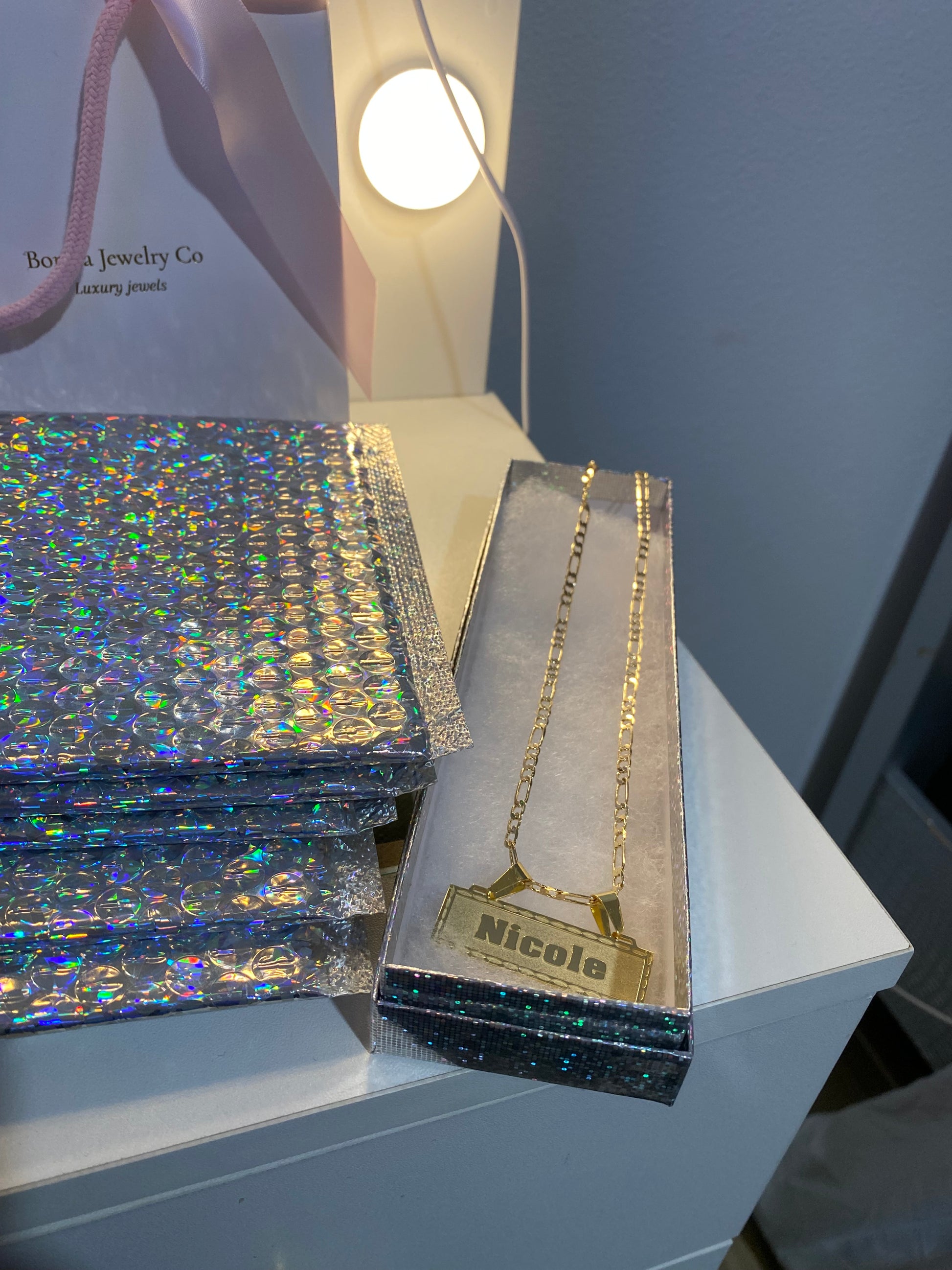 Material de la placa con nombre: La placa con nombre está hecha de acero inoxidable y recubierta con baño de oro de 18k. (no se oxida ni se desvanece).