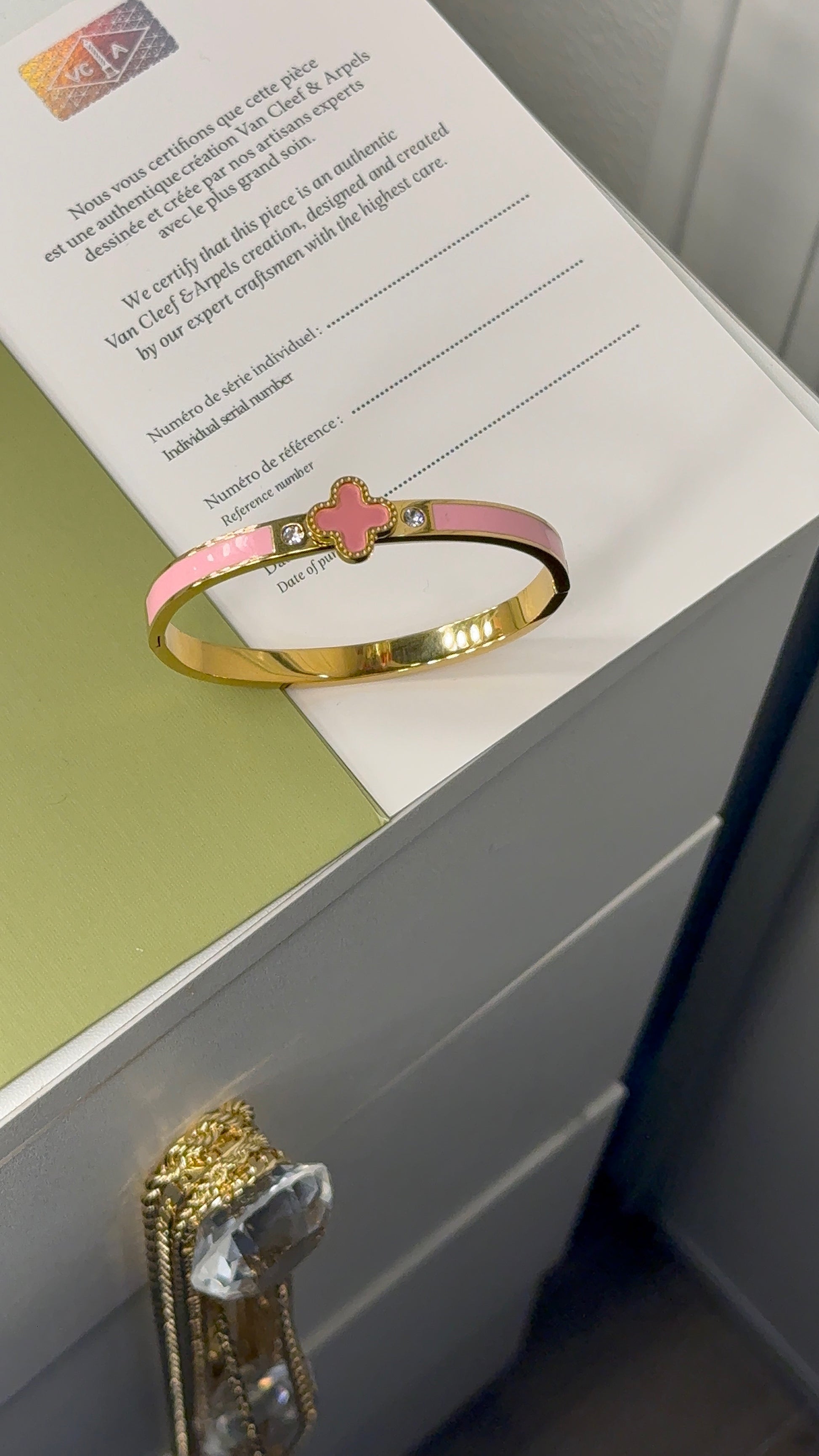Stainless steel pink clover bracelet