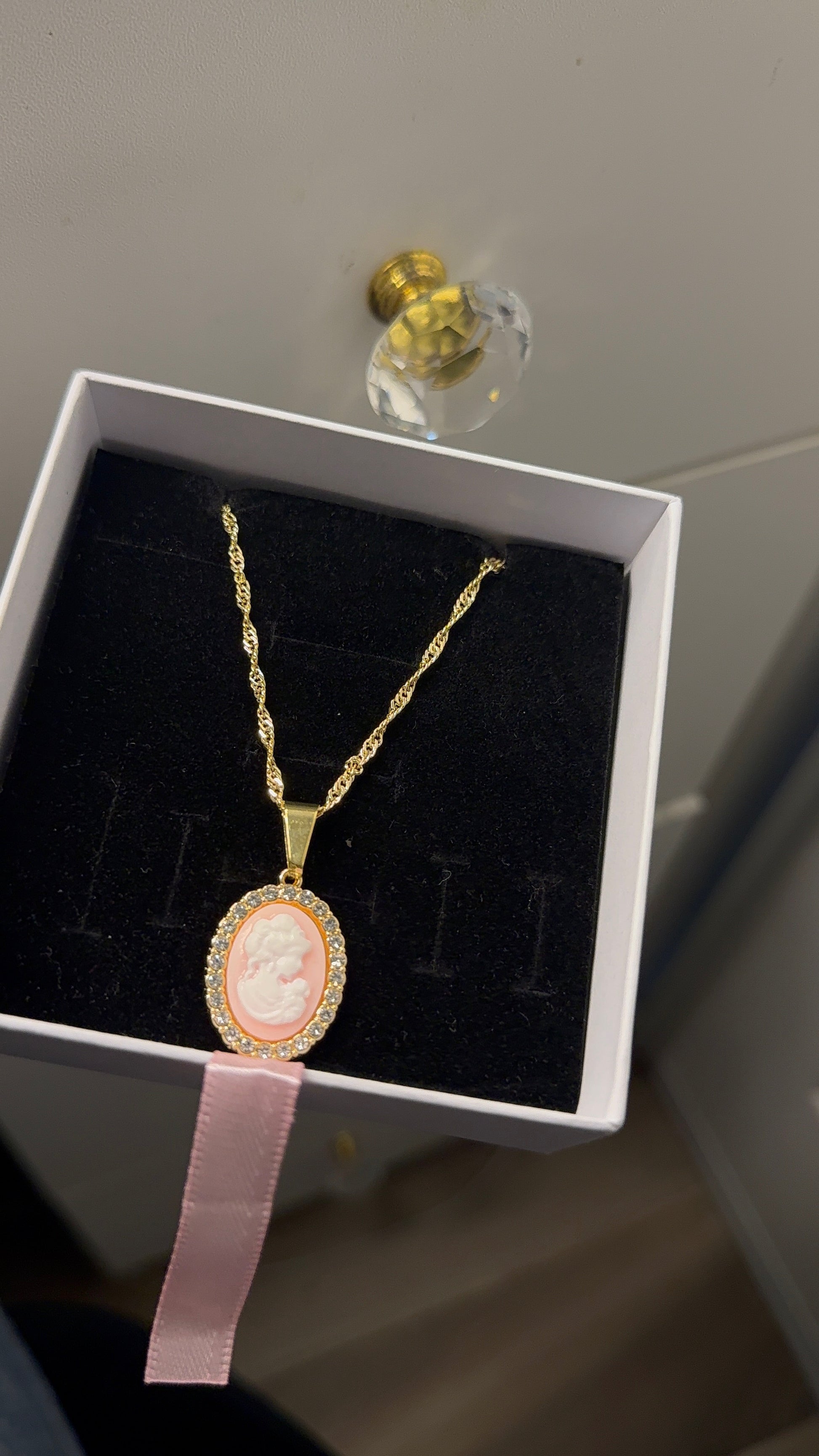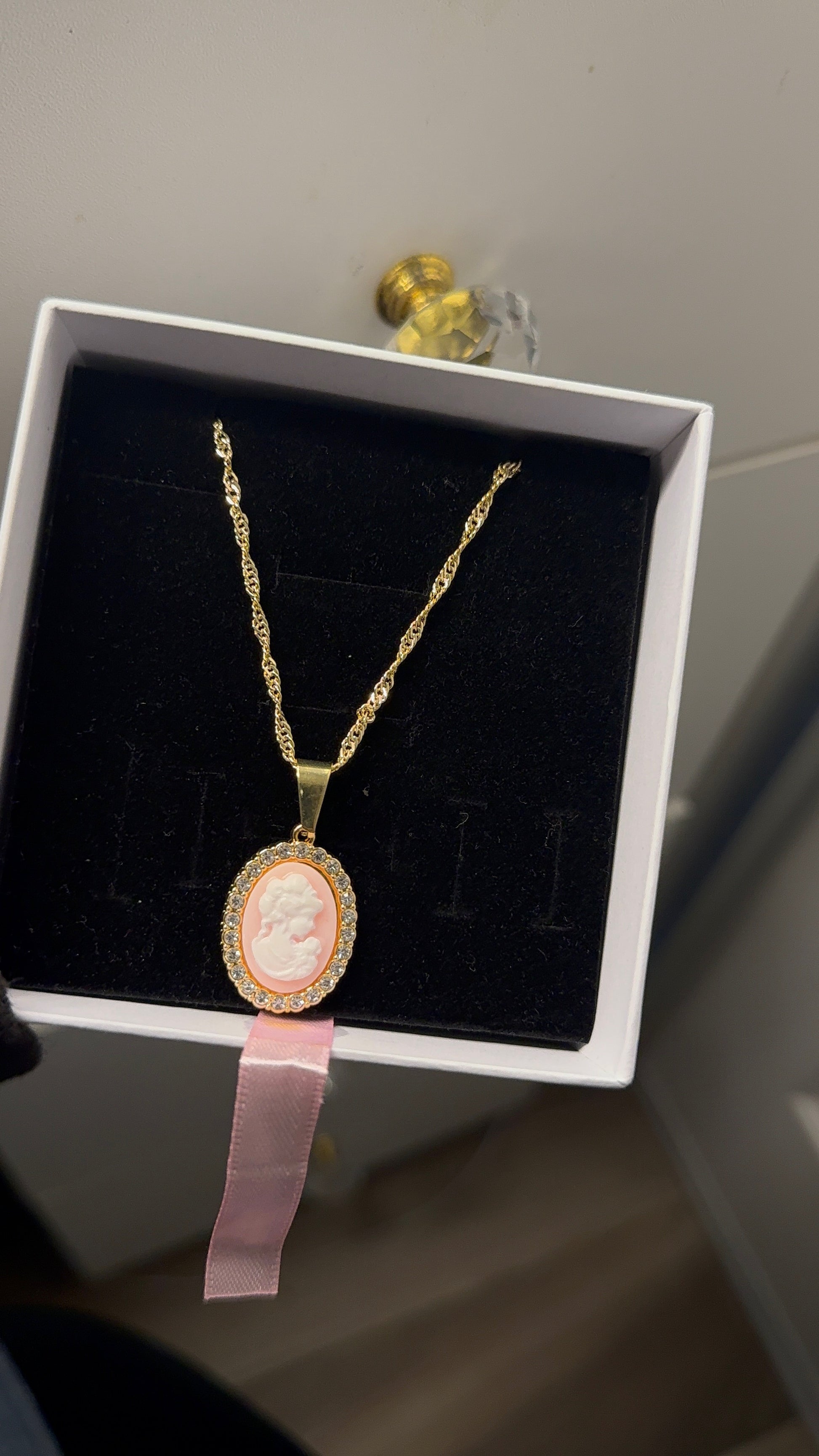 Vintage pink cameo pendant with necklace